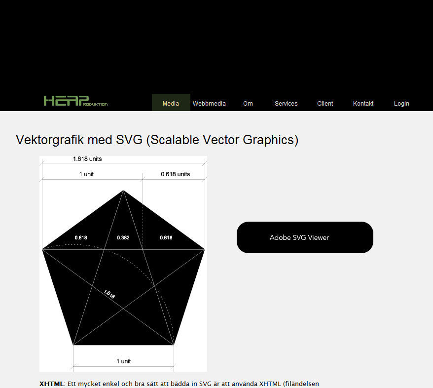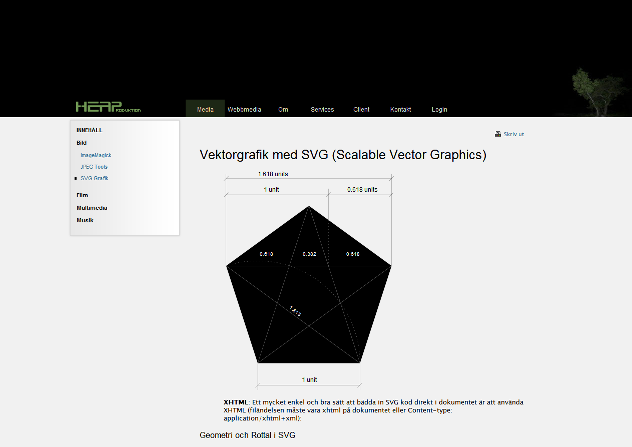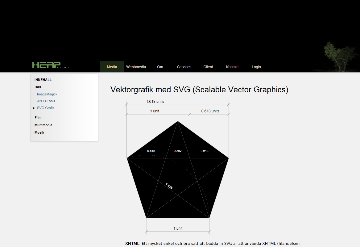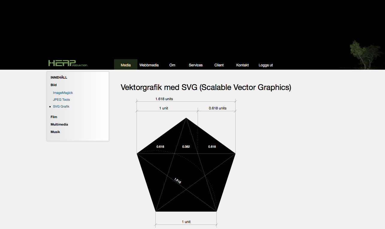 Moderna webbläsare klarar av att visa vektorgrafik direkt i sidan utan extra plugins. Har du en sådan är bilden du ser här ovan inte en vanlig pixelbild utan den ritas upp med hjälp av vektorer. Fördelen med vektorer framför pixlar är att den är skalbar. Om du skulle skriva ut den här sidan så kommer ovanstående bild vara betydligt skarpare är om den vore en pixelbaserad bild.