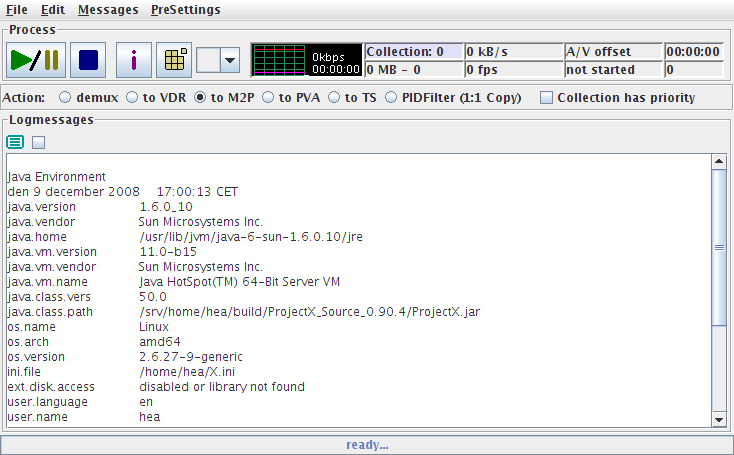 Efter att ha installerat sun java sdk så funkar ProjectX med preview och allt.