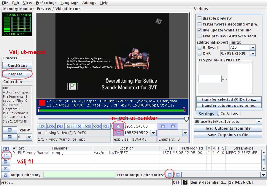 DVBcut, frame accurate, snabbt arbetsflöde från tv-ström till färdig DVD.